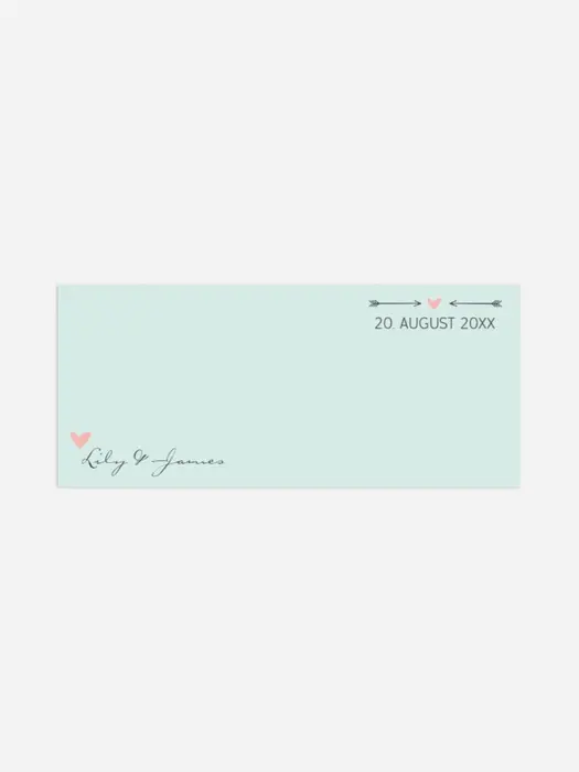 Schlicht und dennoch so aussagekräftig. Die Tischkarte zur Hochzeit Pärchen passt perfekt in die Designserie und übernimmt den minimalistischen Stil der Einladungskarte.