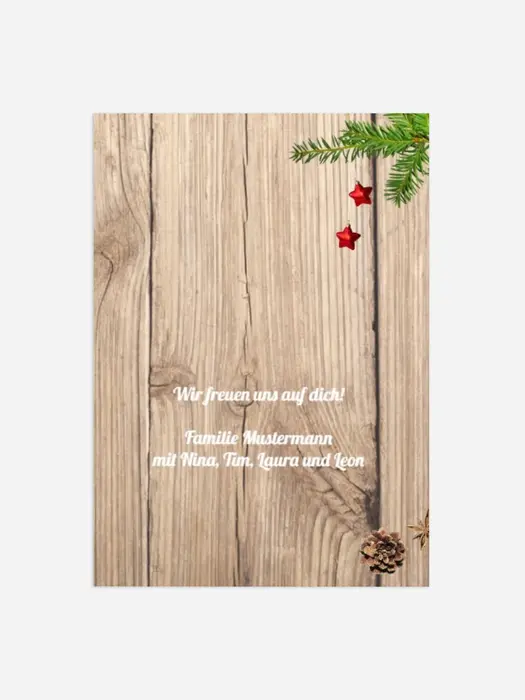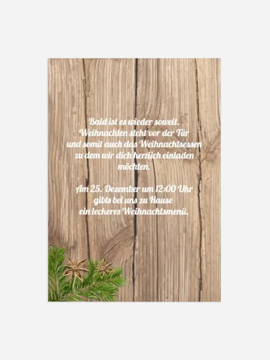 - Weihnachts Einladungskarte privat Holztisch
